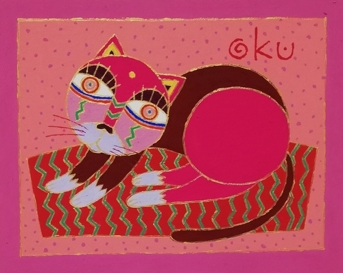 右上の「目玉焼き型の太陽」=「明るさの象徴」は、私の絵のシンボルマークです。