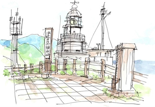 国内の灯台や歴史的建造物を探訪し、スケッチするのを趣味として
